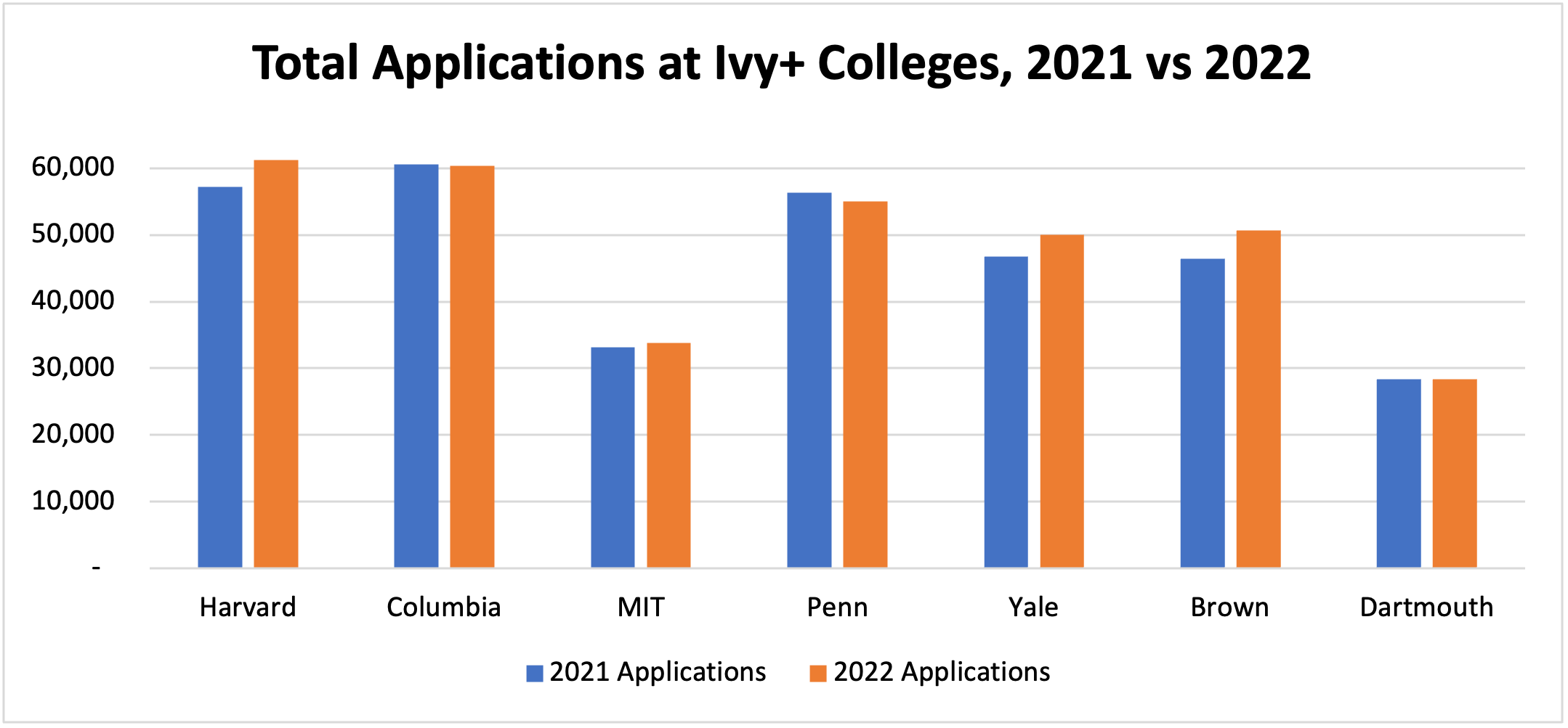 Even More Students Submitted Applications to Ivy+ Schools for Fall 2022 Admission